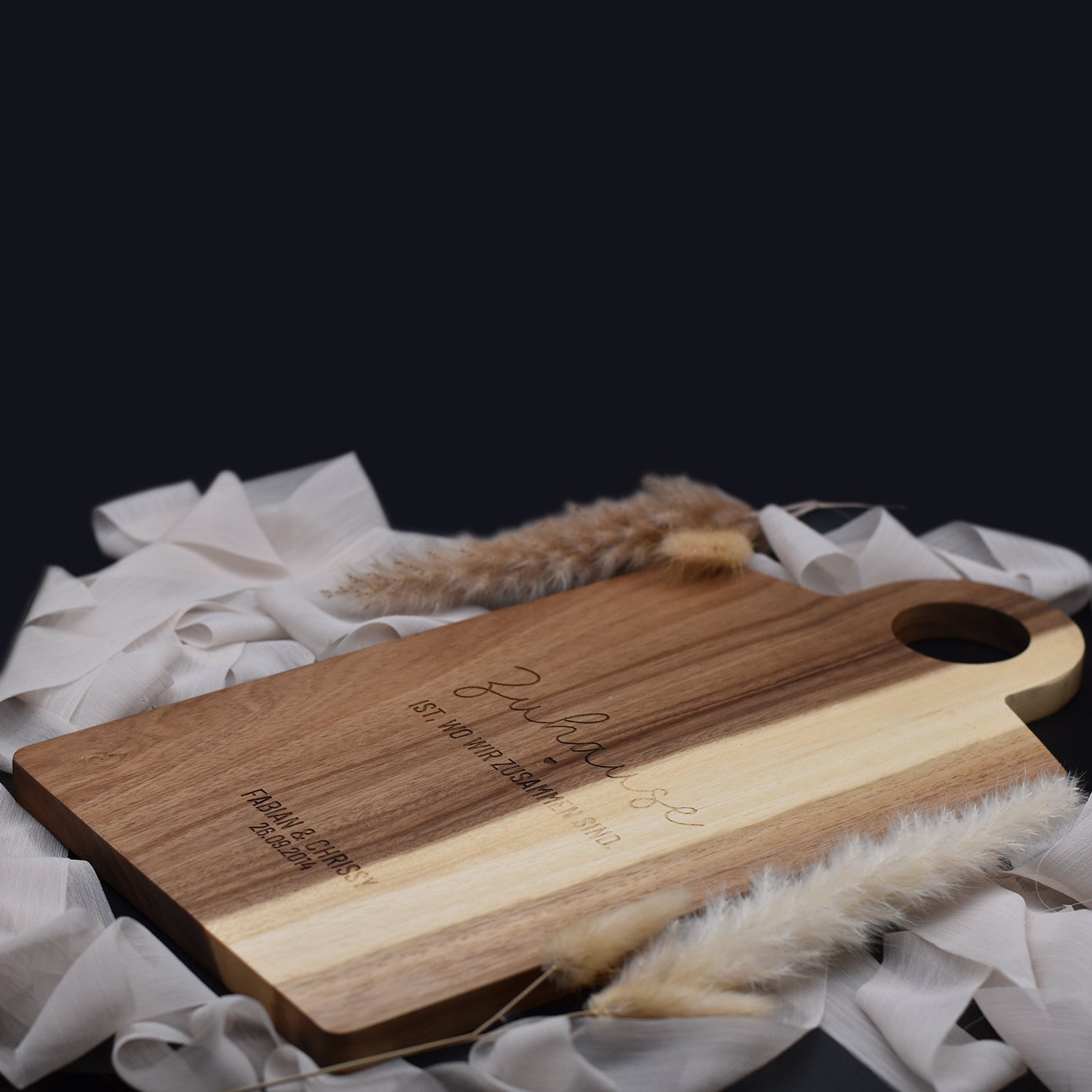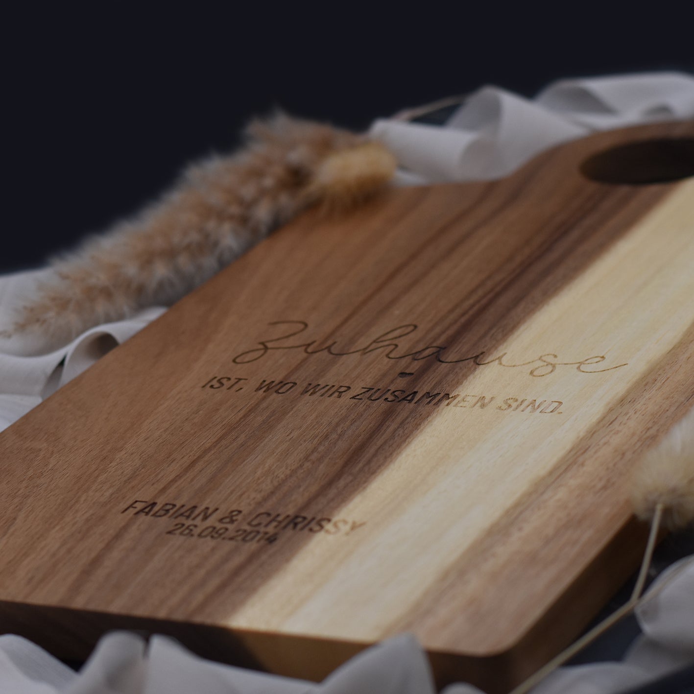 Robustes Akazienholz mit persönlicher Note. Die natürliche Holzstruktur sorgt für rustikalen Charme, während die personalisierte Gravur das Schneidebrett zu einem echten Hingucker macht. Ein Geschenk mit Herz ,das bei jedem Dinner-Event für Gesprächsstoff sorgt.